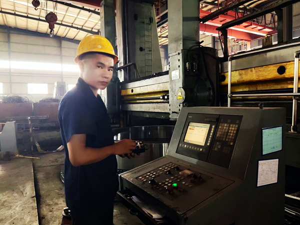 他為人憨厚老實(shí),吃苦耐勞,服從安排,任勞任怨,做事專注細(xì)致,被張主任看在眼里記在心里。因此當(dāng)8米立車一名師傅辭職后,他便按照“量才配崗”的原則,立即把趙江調(diào)到立車崗位,每天親自教他操作立車。通過他的嚴(yán)格要求,加上趙江堅(jiān)持不懈的努力,他終于熟練掌握了立車的操作技術(shù)。如今,他在立車崗位上己經(jīng)做了兩年,前后己帶了兩位徒弟。每當(dāng)同事夸他上手快時,他卻覺得自己的技術(shù)離師傅還有很大差距?!凹埳蠈W(xué)來終覺淺,絕知此事要躬行。張主任的親自教導(dǎo)、我從書本上自學(xué)來的知識,自己按條條框框操作,這是打基礎(chǔ)。領(lǐng)悟了圖紙的加工要求后,在保證質(zhì)量的前提下,編寫好程序、各項(xiàng)參數(shù)、速度(包括進(jìn)給速度和轉(zhuǎn)速)后,我還必須隨時觀察車床上的一舉一動,監(jiān)管加工全過程,在工作實(shí)踐中不斷發(fā)現(xiàn)問題、思考問題、解決問題、總結(jié)經(jīng)驗(yàn)。當(dāng)我能對具體問題具體分析具體解決并游刃有余時,我就從操作工變成師傅了,”趙江說。