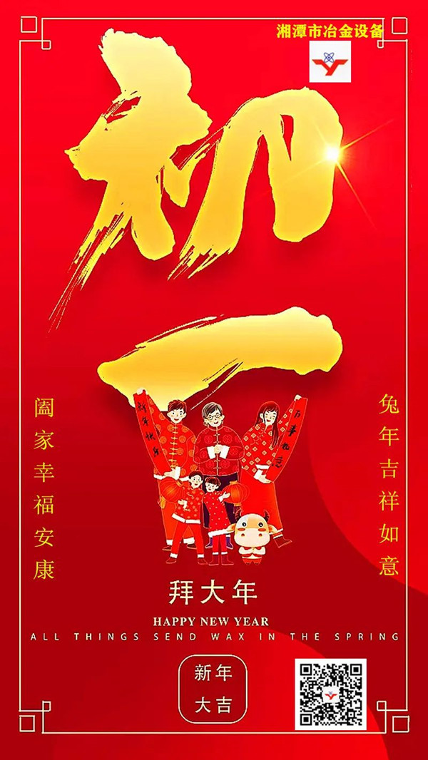 金虎呈歡辭舊歲,福兔躍起迎新春。 湘潭市冶金設備發(fā)展、成長的每一步,都凝聚了各位客戶、合作伙伴和各界朋友的關懷、信賴與支持,以及全體湘冶家人的辛勤耕耘與打拼。充滿機遇與挑戰(zhàn)的2023,我們將信心滿懷,堅守初心,沿著既定的宏偉目標,再譜新篇章。 值此兔年春節(jié)到來之際,國內冶金礦山設備非標定制專家——湘潭市冶金設備制造有限公司恭祝大家:春節(jié)團圓美滿!闔家幸福安康!在大展鴻兔、兔飛猛進的2023年里,好運常在!笑口常開!開心每一秒,快 樂每一天,幸福連連,健康久久!