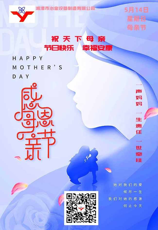 百善孝為先。孝心是對今天社會轉(zhuǎn)型期人際間情感疏離的感召,同時(shí)也是“湘冶”企業(yè)文化的重要內(nèi)容。值此母親節(jié)來臨之際,湘潭市冶金設(shè)備衷心祝愿天下母親節(jié)日快樂!幸福安康!