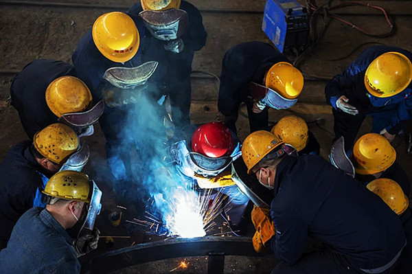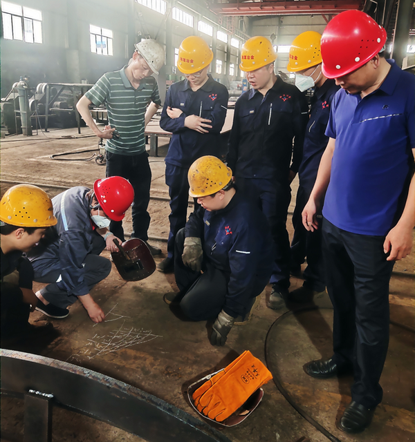 劉美林總經(jīng)理在專家指導(dǎo)過程中向焊工們強調(diào)焊縫外觀美的重要性,強調(diào)提升質(zhì)量勢在必行,勉勵焊工們學(xué)習(xí)一級焊接技師的工匠精神, 勇攻技術(shù)難關(guān),善于學(xué)習(xí)鉆研,與湘冶同進(jìn)步。