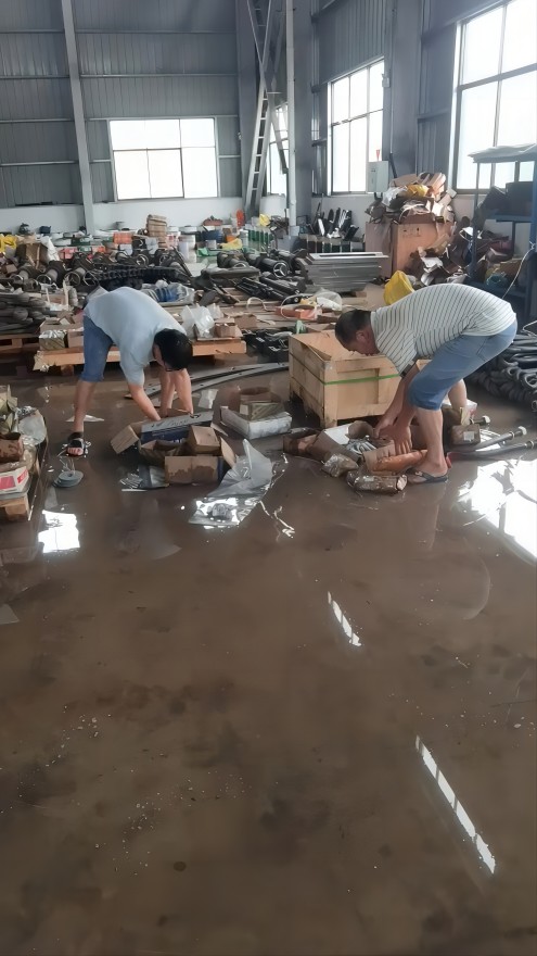 黨員張忠是在清晨六點多就奔赴車間前線,指揮員工譚正武迅速吊起8米立車,并與門衛(wèi)值班人員黃永輝一起搶救倉庫物資。7點后,干部們冒雨陸續(xù)趕往車間搬運物資,加固設(shè)備,確保生產(chǎn)線關(guān)鍵節(jié)點的安全。盡管衣服濕透,汗水混著雨水滴落,卻不敢有絲毫松懈,隨時備戰(zhàn)應(yīng)急響應(yīng)。